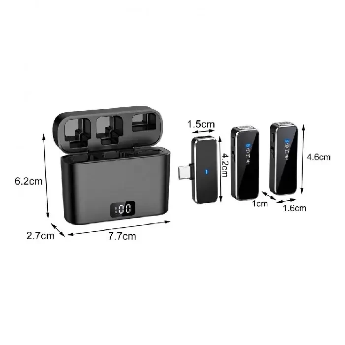 Зауважте, що портативний смарт-кейс для зарядки мікрофона забезпечує більше 4 разів зарядку, а передавач може працювати до 9 годин безперервно. Інтелектуальне шумозаглушення та автоматична синхронізація в реальному часі допомагають забезпечити чистий і якісний звук, навіть у шумних умовах.