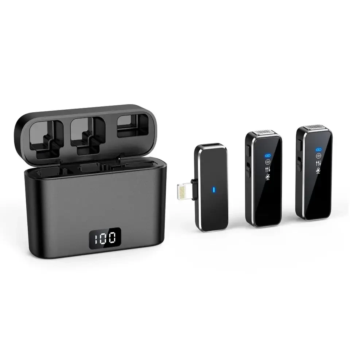 В пошуку легких і зручних бездротових мікрофонів, які можна швидко прикріпити до одягу і почати транслювати без зайвих зусиль? Наш набір петличних мікрофонів N3 - iPhone (lightning) з блоком живлення - ідеальне рішення для вас. Загальна вага всього 55 грамів забезпечує максимальний комфорт. Приймач лише 5 грамів, а кожен мікрофон - 10 грамів. А спеціальний кейс не лише заряджає мікрофони швидко, але й забезпечує їх зручне зберігання.