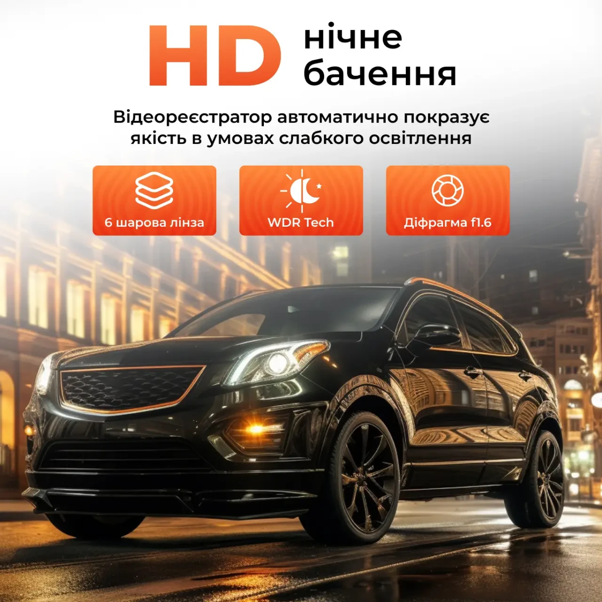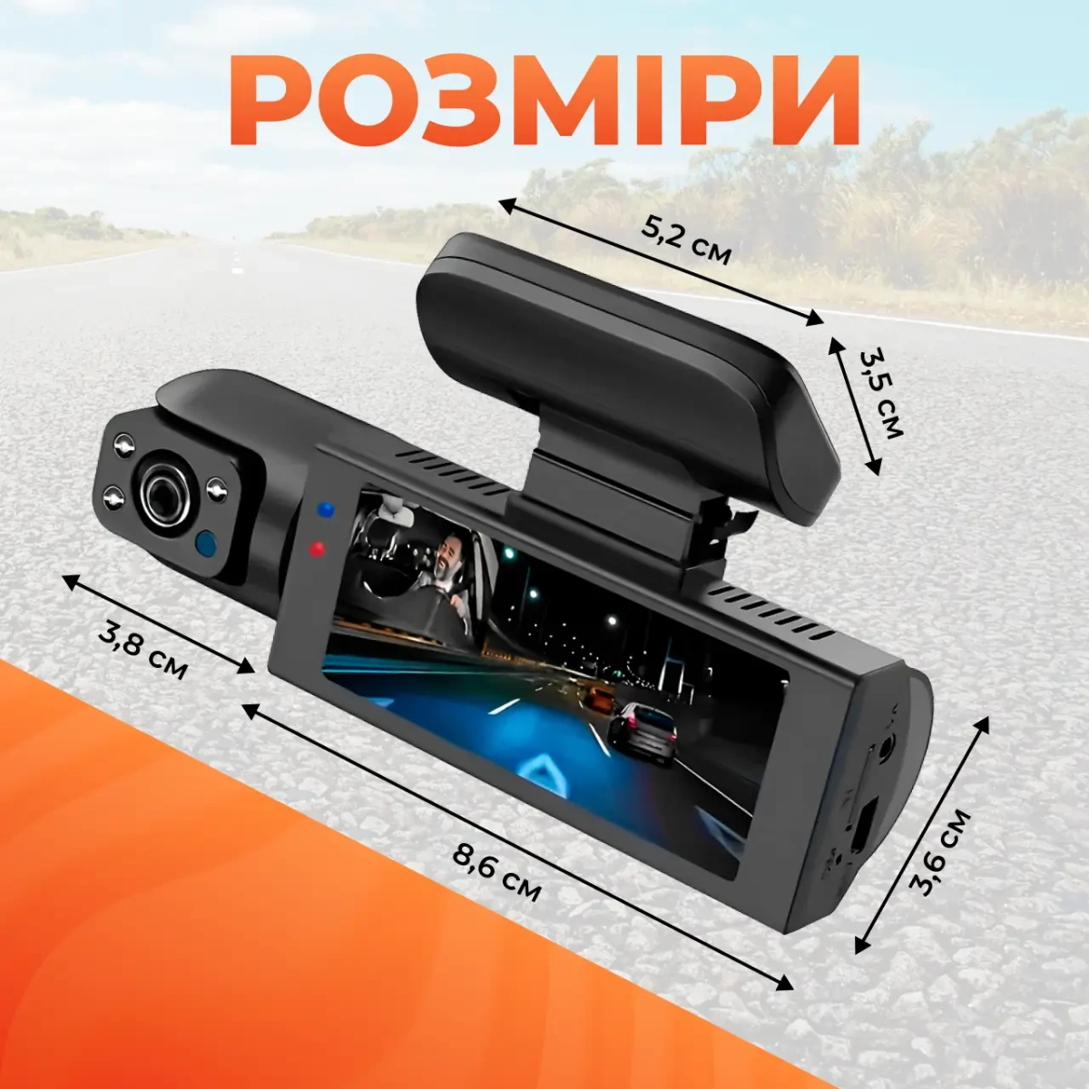 Відеореєстратор автомобільний камера для авто 64гб 1080HD IPS екран акумуляторний 2 камери + Micro SD 64 Гб у подарунок !