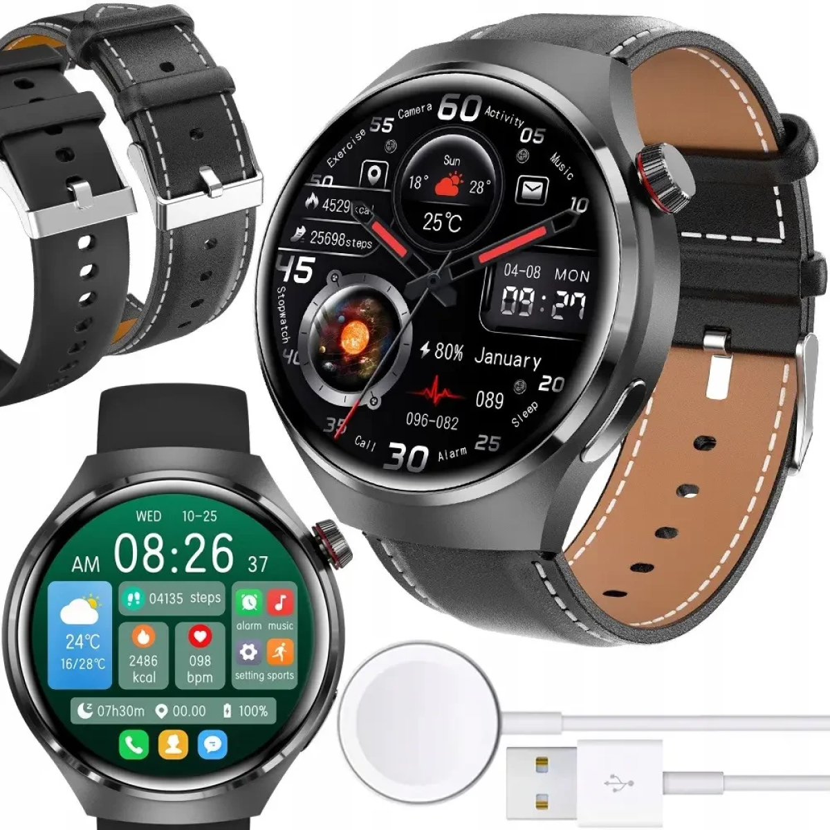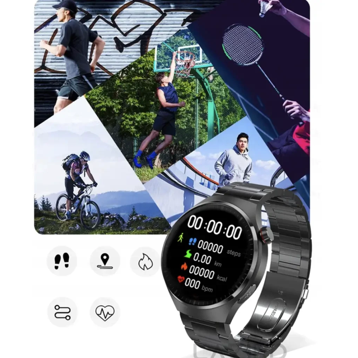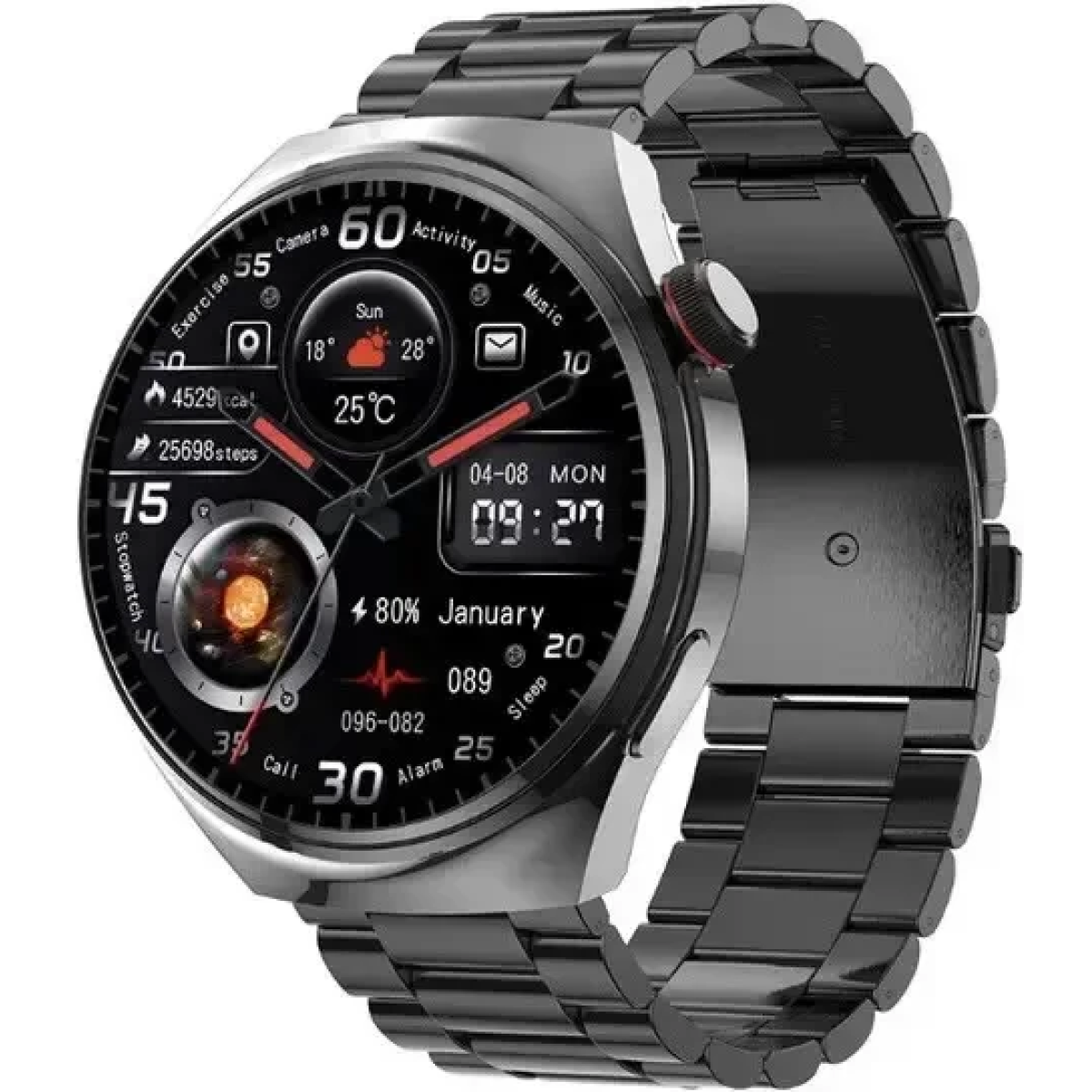 Чоловічий смарт годинники з gpc стальний, чоловічий годинник з nfc водонепроникні AMOLED-дисплеєм та крокоміром+ремінці та зарядка