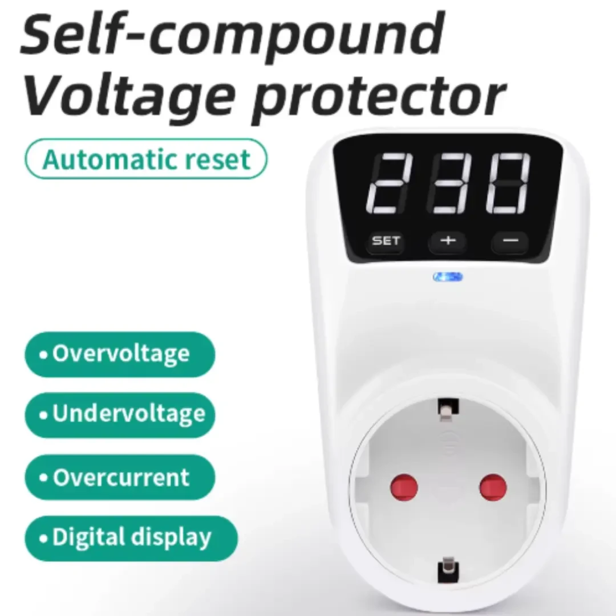 Розетка з регульованим обмеженням напруги, 16 А, автоматичний захист від перепадів напруги